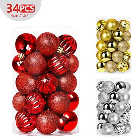 Shareconnn クリスマス オーナメント ボール 4cm 34個入り 豪華 北欧風